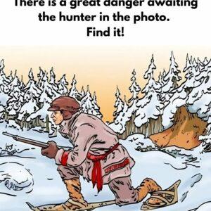 In this optical illusion puzzle, a hidden danger awaits the hunter, but it’s not what you think. While the hunter appears safe in the snow-covered landscape, there’s…