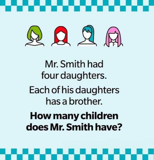 Think you’ve got a sharp eye for solving riddles? Here’s one that’s been stumping people left and right: Mr. Smith has four daughters, and each one has…