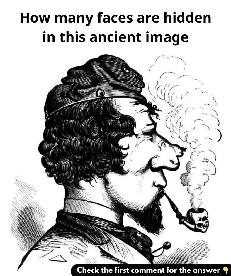Are you ready for a real brain teaser? Take a good look at this vintage illustration—can you spot all the hidden faces? At first glance, it might just look like a man smoking a pipe, but look closer, and you’ll discover faces cleverly concealed throughout the image. It’s not as easy as it seems! Put your observation skills to the test and share how many faces you can find in the comments below. Are you up for the challenge?