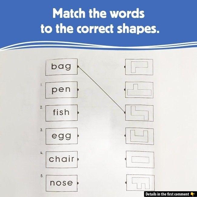 Here’s a deceptively simple worksheet: match each word—bag, pen, fish, egg, chair, nose—to one of six oddly shaped boxes on the right. It looks like a quick connect-the-dots exercise, but countless people trip over subtle contours. Think you can pair every word with its correct outline?