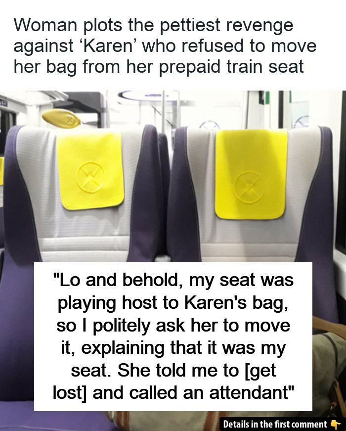 When u/Zulera301 politely asked the woman to move her bag so she could sit, the response was anything but accommodating. The woman, who soon became known as “Karen,” demanded to see the Redditor’s ticket and rudely told her to “get lost.” The situation escalated when the woman called an attendant to defend her actions, but as expected, the attendant sided with the Redditor, instructing the woman to move her belongings from the seat.