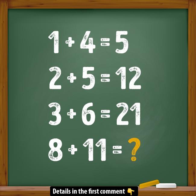 This fun math puzzle might look simple at first glance, but there’s a tricky rule behind these equations! Can you solve 8 + 11 = ? and explain why the answer is 96? Don’t just stop at the answer—think about the math logic behind it and drop your explanation in the comments below. Ready to give it a try?